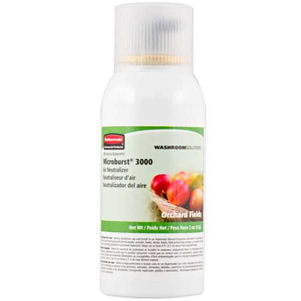 Aerosol Air Freshener Refill, Liquid, Fragrance Orchard, Aerosol Spray, 2.6 oz, Product Series Microburst 3000, Refill Life 168 day, NSF Rating Not Rated, Coverage 6,000 cu ft, Light Yellow, Compatible Grainger Part Number 22PT68, 52JR39, Compatible Mfg. Model Number 1793532, Length 1 7/8 in, Width 1 7/8 in, Height 4 7/8 in, Net Weight 3 lb, Package Quantity 12