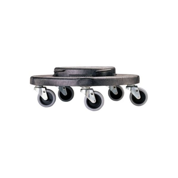 Brute, Black Trash Can Dolly, Commercial Grade, Twist OnOff, Rugged Duramold, 5 Casters, Fits 20, 32, 44 55 Gallon Round Brute Containers, Holds Up To 350 LBS, PDQ Tray