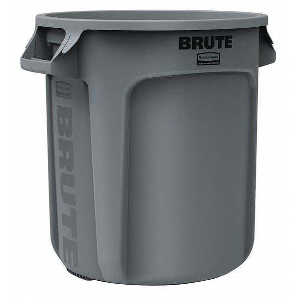 BRUTE 10 gal Round Heavy Duty Plastic Can, Gray, None, Plastic, Not Applicable