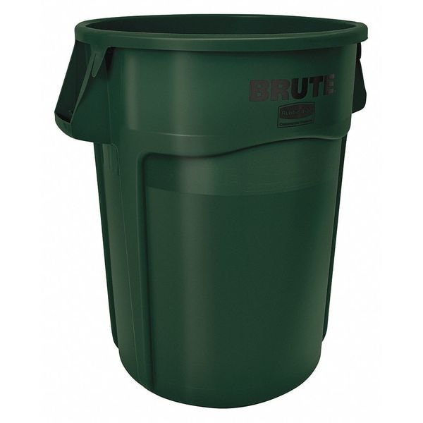 BRUTE 44 gal Round Heavy Duty Plastic Can, Green, None, Plastic