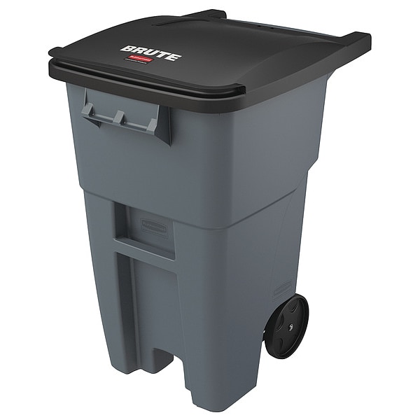BRUTE 50 gal Rectangular Rolling Plastic Can, Gray, None, Plastic, 23 3/8 in