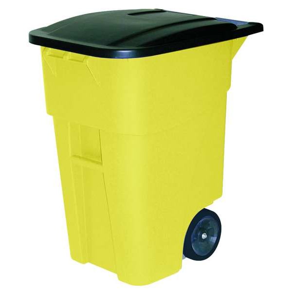 BRUTE 50 gal Rectangular Rolling Plastic Can, Yellow, None, Plastic, 23 3/8 in