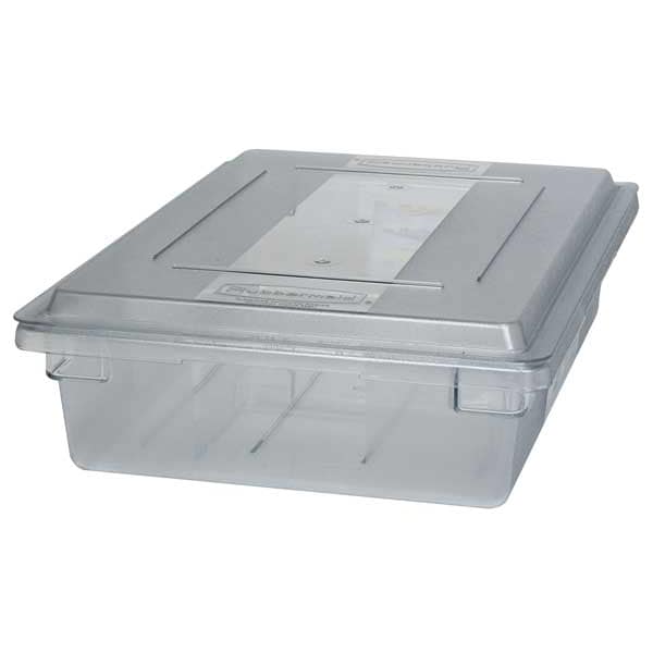 Food/Tote Box, Capacity 16.6 qt, Color Clear, Material Polycarbonate, Overall Height 18 in, Overall Length 26 in, Overall Width 12 in, NSF Certified Yes, Dishwasher Safe No, Microwaveable No, Overall Diameter 26 in, Freezer Safe No, Product Type Food/Tote Box, Graduated No, Includes Handle No, Inside Diameter Not Applicable