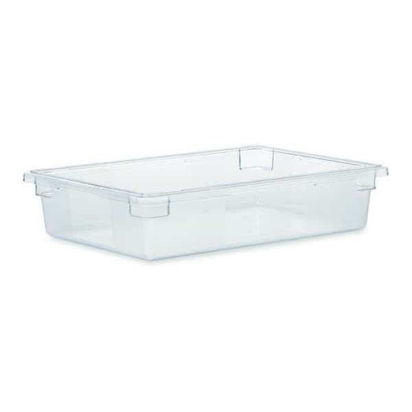 Food/Tote Box, Capacity 8.5 gal, Color Clear, Material Polycarbonate, Overall Height 6 in, Overall Length 26 in, Overall Width 18 in, NSF Certified Yes, Dishwasher Safe No, Microwaveable No, Overall Diameter 18 in, Freezer Safe No, Product Type Food/Tote Box, Graduated No, Includes Handle No, Inside Diameter Not Applicable