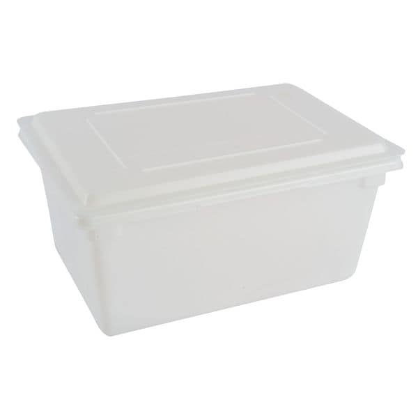Lid for Tote Box, Capacity 26 qt, Color White, Material Polyethylene, Overall Height 9 in, Overall Length 26 in, Overall Width 18 in, NSF Certified Yes, Dishwasher Safe No, Microwaveable No, Overall Diameter 18 in, Freezer Safe No, Product Type Lid for Tote Box, Graduated No, Lid Color Clear, Includes Handle No, Inside Diameter Not Applicable