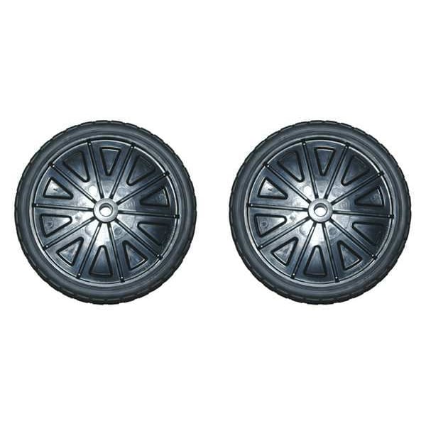 Wheel Set, For Use With 1971968, 1971970, 1971971, 1971973, 1971974, 1971976, 1971991, 1971993, 1971994, 1971996, 1971997, 1971999, 1972000, 2002592, 2002593, FG9W2100GRAY, FG9W2173BLUE, FG9W2200BLUE, FG9W2200GRAY, FG9W2273BLUE, Color Black, Height 1 3/4 in, 10 in Width/Diameter, Length 10 in, Material Steel, Container Shape Round, Fits Container Size 65 gal, 90 gal, Includes (2) Retainer Caps, (2) Wheels