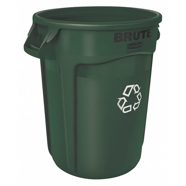 Recycling Can, For Recyclable Material Bottle, Can, Glass, Paper, Plastic, Trash Container Capacity 32 gal, Top Type Open, Number of Containers 1, Number of Openings 1, Container Markings Recycle Symbol, Total Capacity 32 gal, Color Green, Container Shape Round, Height 27 1/4 in, Width/Diameter 22 in, Depth Not Applicable, Material Grouping Plastic, Specific Container Material Polyethylene, Location Indoor/Outdoor, Mobility Stationary, Lid Connection Snap On