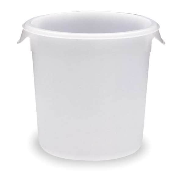 Food Storage Container, Capacity 2 qt, Color White, Material Polyethylene, Overall Height 4 in, Overall Length 1 1/2 in, Overall Width 4 3/4 in, NSF Certified Yes, Dishwasher Safe Yes, Maximum Temperature 150 Degrees F, Microwaveable No, Minimum Temperature 35 Degrees F, Overall Diameter 4 3/4 in, Freezer Safe No, Product Type Food Storage Container, Graduated No, Includes Handle Yes