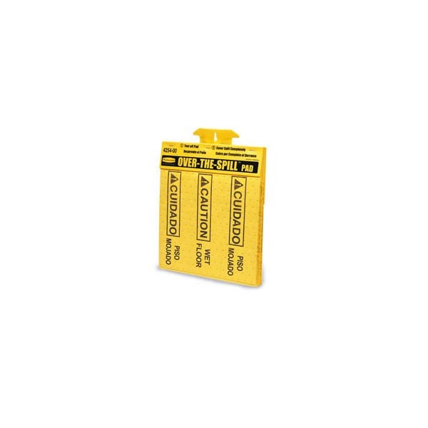 RUBBERMAID® 4254 OVER-THE-SPILL? PAD, 22 SHEETS/PAD SPILL PADS OFFER A SLIP-RESISTANT SURFACE. THESE TEAR-OFF PADS COVER AND ABSORB SPILLS AND ALERTS PEDESTRIANS. EACH PAD ABSORBS UP TO 12 OZ. OF FLUID. IMPRINTED WITH "CAUTION WET FLOOR" IN ENGLISH AND SPANISH. PLASTIC PAD HAS SLOT FOR HANGING. BRIGHT YELLOW. EACH ABSORBENT PAD MEASURES 16-INCHES LONG X 12.6-INCHES WIDE. 22 SHEETS PER PAD. SOLD AS A PACKAGE OF 12 PADS.
