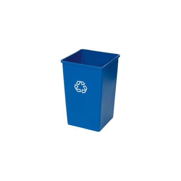 HIGH CAPACITY RECYCLING COLLECTION FOR CROWDED AREAS. THIS RECYCLING CONTAINER IS GREAT FOR AREAS OF HIGH PAPER GENERATION INCLUDING NEAR COPIERS, PRINTERS AND IN MAILROOMS. RECYCLING WASTE CONTAINER CAN BE USED INDOORS AND OUTDOORS. SQUARE RECYCLING RECEPTACLE IS MADE WITH POST CONSUMER RECYCLED RESIN (PCR) TO EXCEED EPA GUIDELINES. FLANGED TOP RIM EDGING FOR EXTRA STRENGTH. BLUE RECYCLED PLASTIC CONTAINER FEATURES A UNIVERSAL RECYCLING LOGO FOR CLEAR IDENTIFICATION.