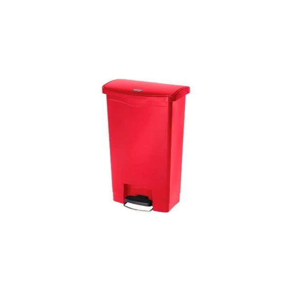 RUBBERMAID® SLIM JIM® PLASTIC STEP ON CONTAINER FRONT STEP, 18 GALLON - RED SLIM JIM® STEP ON TRASH CONTAINERS ARE CONSTRUCTED WITH HIGH-QUALITY PLASTIC THAT MEET THE NEEDS OF ANY ENVIRONMENT WITH EFFICIENCY, SAFETY, AND DURABILITY. SLIM PROFILE AND SMALL FOOTPRINT MAXIMIZE SPACE TO FIT IN TIGHTEST SPACES. SMOOTH SURFACES AND CONTOURED EDGES ARE EASY TO CLEAN. RUBBERMAID® SLIM JIM® CONTAINER FEATURES A QUIET AND CONTROLLED LID-CLOSURE WHICH MINIMIZES NOISE, AN INTERNAL HINGE DESIGN THAT PREVENTS WALL DAMAGE AND AN INCREASED FOOT PEDAL CLEARANCE FOR EASIER ACCESS AND OPERATION. LINER RETAINER BAND EASILY AND SECURELY HOLDS TRASH BAG LINERS. FACTORY MUTUAL CERTIFIED ENSURES FIRE SAFETY FOR REGULATORY COMPLIANCE. MEETS OSHA AND OBRA STANDARDS FOR WORKER AND ENVIRONMENTAL SAFETY.