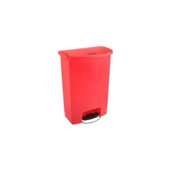 RUBBERMAID® SLIM JIM® PLASTIC STEP ON CONTAINER FRONT STEP, 24 GALLON - RED SLIM JIM® STEP ON TRASH CONTAINERS ARE CONSTRUCTED WITH HIGH-QUALITY PLASTIC THAT MEET THE NEEDS OF ANY ENVIRONMENT WITH EFFICIENCY, SAFETY, AND DURABILITY. SLIM PROFILE AND SMALL FOOTPRINT MAXIMIZE SPACE TO FIT IN TIGHTEST SPACES. SMOOTH SURFACES AND CONTOURED EDGES ARE EASY TO CLEAN. RUBBERMAID® SLIM JIM® CONTAINER FEATURES A QUIET AND CONTROLLED LID-CLOSURE WHICH MINIMIZES NOISE, AN INTERNAL HINGE DESIGN THAT PREVENTS WALL DAMAGE AND AN INCREASED FOOT PEDAL CLEARANCE FOR EASIER ACCESS AND OPERATION. LINER RETAINER BAND EASILY AND SECURELY HOLDS TRASH BAG LINERS. BUILT-IN WHEELS FOR EASIER MOBILITY. FACTORY MUTUAL CERTIFIED ENSURES FIRE SAFETY FOR REGULATORY COMPLIANCE. MEETS OSHA AND OBRA STANDARDS FOR WORKER AND ENVIRONMENTAL SAFETY.