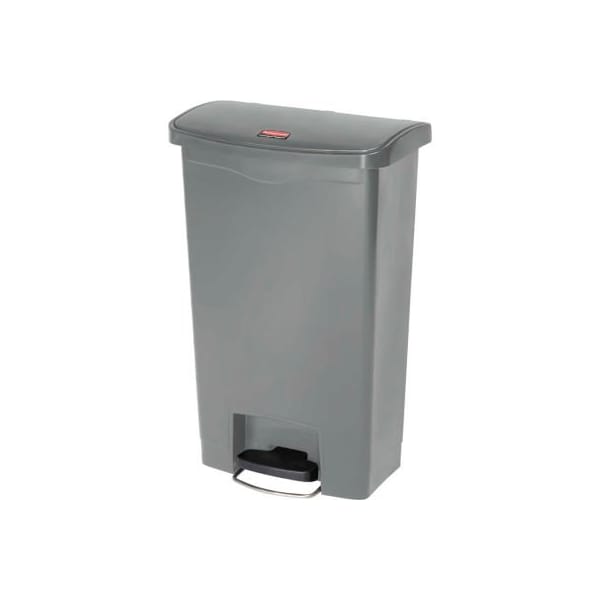 Rubbermaid slim jim plastic step on container, front step - 13 gallon, gray - 1883602 the rubbermaid commercial slim jim step-on container features a slim profile and small footprint to fit in tightest spaces. Slim jim step-on containers are constructed with premium-quality materials and meet the needs of any environment with efficiency, safety, and durability. features slim jim step-on containers constructed with premium-quality plastic meet the needs of any environment with efficiency, safety, and durability. slim profile and small footprint maximize space to fit in tightest spaces. internal hinge design prevents wall damage. quiet and controlled lid-closure minimizes noise to enhance guest and patient satisfaction. factory mutual certified ensures fire safety for regulatory compliance.