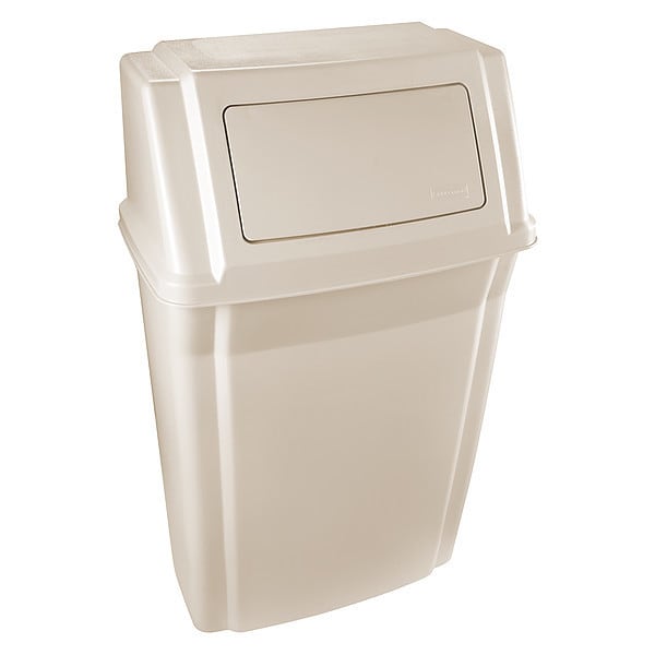 Fire-Resistant Trash Can, Rectangular, Dome with Push Door, 15 gal, Tan, Height 32 1/2 in, Width/Diameter 11 3/4 in, Depth 19 1/2 in, Plastic, Plastic, Textured, Indoor, Stationary, Lid Included, Hinged, None, Wall-Mounted
