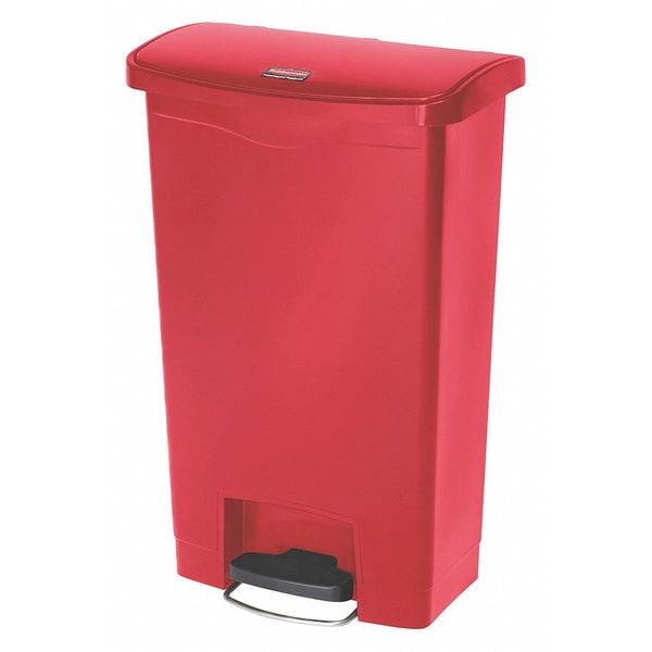 Slim Jim Step-On 13 gal Rectangular Slim-Profile Plastic Can, Red, Foot Pedal, Plastic, 12 in