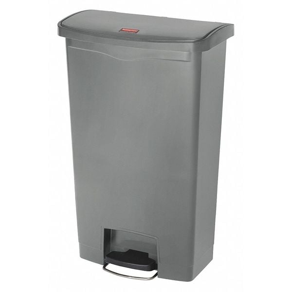 Slim Jim Step-On 18 gal Rectangular Slim-Profile Plastic Can, Gray, Foot Pedal, Plastic, 13 in