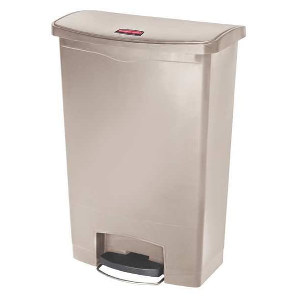Slim Jim Step-On 24 gal Rectangular Slim-Profile Plastic Can, Beige, Foot Pedal, Plastic, 23 3/8 in