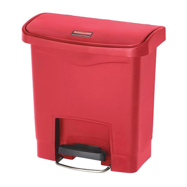 Step Can, Rectangular, Flat, 4 gal, Red, Height 15 3/4 in, Width/Diameter 14 13/16 in, Depth 9 1/8 in, Plastic, Plastic, Smooth, Indoor, Stationary, Lid Included, Hinged, Foot Pedal, Free-Standing