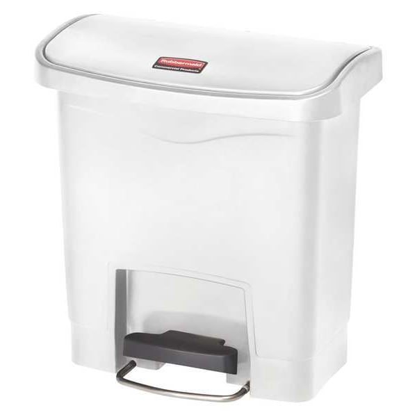 Step Can, Rectangular, Flat, 4 gal, White, Height 15 3/4 in, Width/Diameter 14 13/16 in, Depth 9 1/8 in, Plastic, Plastic, Smooth, Indoor, Stationary, Lid Included, Hinged, Foot Pedal, Free-Standing