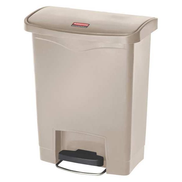 Step Can, Rectangular, Flat, 8 gal, Tan, Height 21 1/8 in, Width/Diameter 16 1/2 in, Depth 17 5/8 in, Plastic, Plastic, Smooth, Indoor, Stationary, Lid Included, Hinged, Foot Pedal, Free-Standing