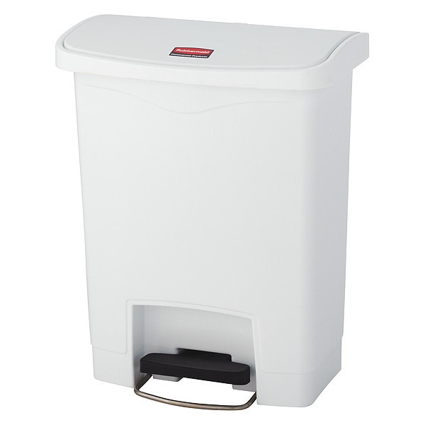 Step Can, Rectangular, Flat, 8 gal, White, Height 21 1/8 in, Width/Diameter 16 1/2 in, Depth 17 5/8 in, Plastic, Plastic, Smooth, Indoor, Stationary, Lid Included, Hinged, Foot Pedal, Free-Standing