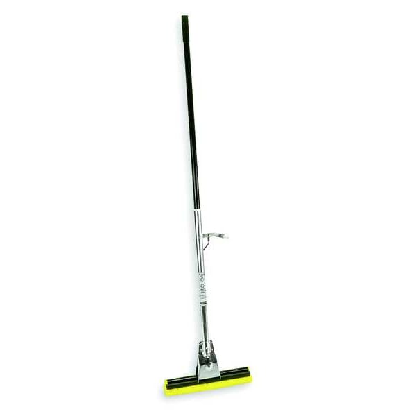 This 12" wide sponge mop features a replaceable synthetic cellulose head and a steel handle with a mounted lever for squeeze-action wringing. Sponge head absorbs liquids fast for easy clean-up.