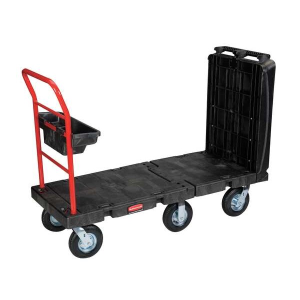 Convertible Platform Truck, Load Capacity 750 lb, Overall Height 45 in, Overall Length 47 8/9 in, Overall Width 24 1/4 in, Deck Material Plastic, Deck Height 11 1/4 in, Deck Length 52 in, Deck Width 24 in, Handle Type Removable, Color Black