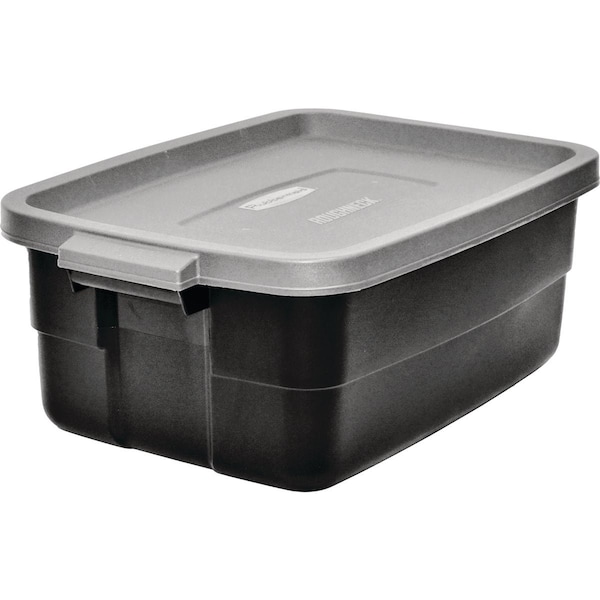 Durable polyethylene rugged storage boxes can withstand harsh temperatures from hot to cold. Sturdy built-in handles allow for easy carrying. Snap-on stay-tight lids help keep contents dry and dust-free. All units are stackable for saving valuable storage space. Black with gray lid.