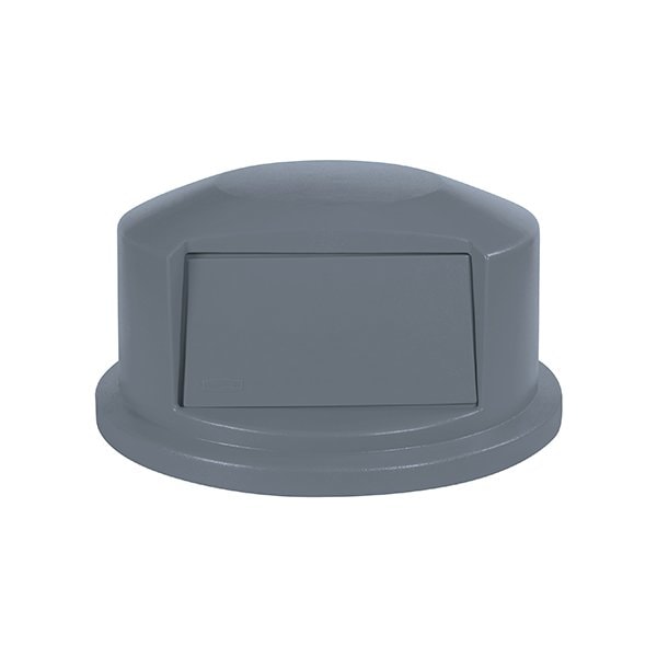 Domed Lids for Rubbermaid Brute Trash Cans. Convenient louvered door keeps trash out of sight; All plastic construction will not rust, chip, peel and resists dents. This product is equivalent to part number: H-1474GR.