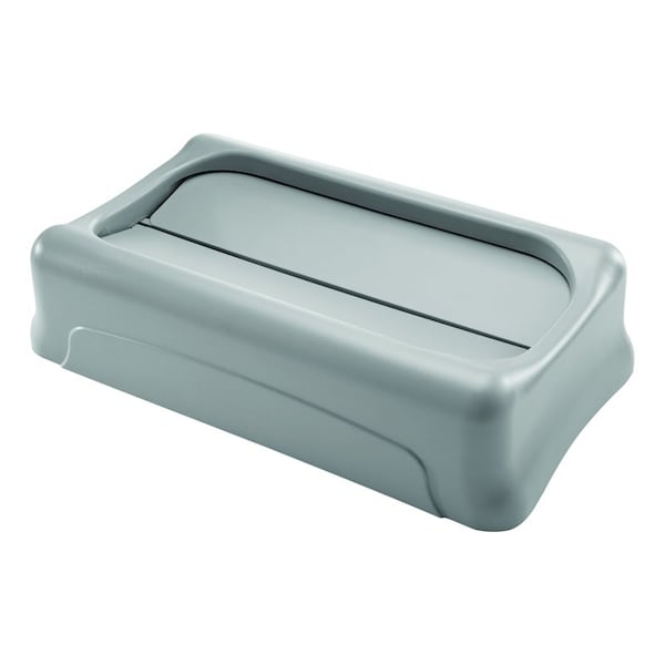 The Rubbermaid Commercial Slim Jim Swing Lid promotes recycling and improves productivity. The swing lid provides easy access for trash disposal and then swings back to hide trash from public view. Lids encourage waste separation and recycling with interchangeable, color-coded tops. The heavy-duty sturdy plastic is rust-proof and easy to clean.