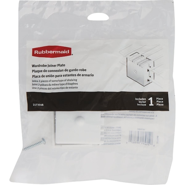 Rubbermaid White Wire Closet Shelving Joiner Plate is used to join two shelves together. Works on linen or wardrobe shelving. Includes 1 wire shelving joiner plate. Hardware included.