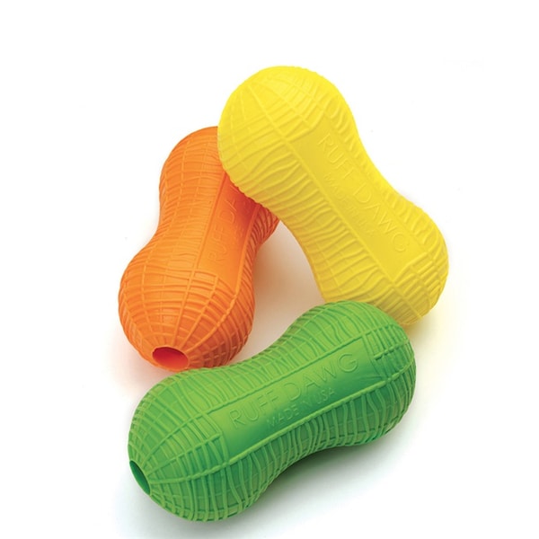 This is one nut you can’t crack. With rinds made from peanut scented solid rubber, the Peanut keeps teeth and gums healthy while providing dogs with hours of exercise and enjoyment. The Peanut is a lot of fun without the messy shell. Measures 6.125" long. MADE IN USA.NOTE: Available in assorted colors only.
