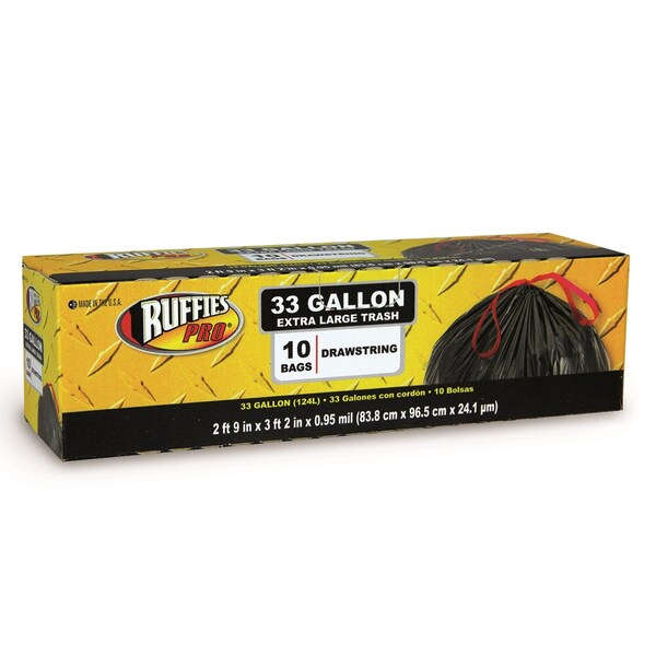 Ruffies extra large trash bags give you the extra space needed for all your extra large clean ups. These durable trash bags are tough on trash in your garage, yard and workshop, but not tough on your wallet.