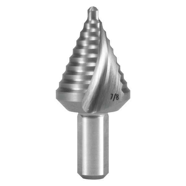 Step Drill,Size 8,7/8 In., High Speed Steel, Bright (Uncoated), 7/8 in to 1 1/8 in Size Range, Straight with Three Flats, 3/8 in Shank Diameter, 2 9/16 in Overall Length