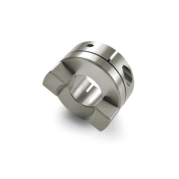 Ruland oldham couplings are zero-backlash and designed for use in applications with high parallel misalignment (up to 10% of the OD). This clamp style hub is a component in a three piece design which mates two stainless steel hubs to a disk insert. It has a 7mm bore, 19.1mm OD, and 9.7mm length. The multiple piece construction allows for a highly customizable coupling that easily combines clamp or set screw hubs with inch, metric, keyed, and keyless bores. Disks are available in three materials allowing the user to tailor coupling performance to system requirements. Stainless steel hubs can be used in high corrosion, high temperature, and cleanroom environments when combined with a PEEK disk. The complete coupling has a balanced design and can accommodate speeds of up to 4,500 RPM. Hardware is metric and tests beyond DIN 912 12.9 standards for maximum torque capabilities. This oldham coupling hub is RoHS and REACH compliant.