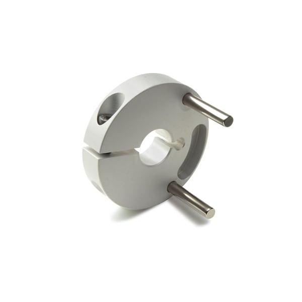 Ruland supplied Controlflex couplings are a lightweight, low inertia, and zero-backlash coupling designed for use in encoders, tachometers, resolvers, and light duty power transmission applications. This clamp style double insert type thin hub requires the user to mate it with one other hub and two acetal inserts. The multiple piece construction allows for a highly customizable coupling that easily combines clamp hubs with inch, metric, keyed, and keyless bores. This hub has a 0.500" bore, 2.205" OD, and 0.472" length. It has a narrow width for use in applications with short shafts that may not be able to protrude completely through the clamp of a regularly sized hub. The use of two inserts allows for higher torque capacity than single insert styles. It is longer than equivalent single insert Controlflex types to couple systems with wide distances between shaft ends. It has a balanced design and can accommodate speeds of up to 10000 RPM. This Controlflex hub is RoHS and REACH compliant and manufactured by Schmidt Kupplung in Germany.