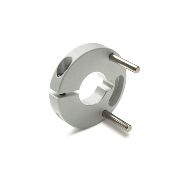 Ruland supplied Controlflex couplings are a lightweight, low inertia, and zero-backlash coupling designed for use in encoders, tachometers, resolvers, and light duty power transmission applications. This clamp style double insert type thin hub requires the user to mate it with one other hub and two acetal inserts. The multiple piece construction allows for a highly customizable coupling that easily combines clamp hubs with inch, metric, keyed, and keyless bores. This hub has a 9mm bore, 37.0mm OD, and 7.0mm length. It has a narrow width for use in applications with short shafts that may not be able to protrude completely through the clamp of a regularly sized hub. The use of two inserts allows for higher torque capacity than single insert styles. It is longer than equivalent single insert Controlflex types to couple systems with wide distances between shaft ends. It has a balanced design and can accommodate speeds of up to 15000 RPM. This Controlflex hub is RoHS and REACH compliant and manufactured by Schmidt Kupplung in Germany.