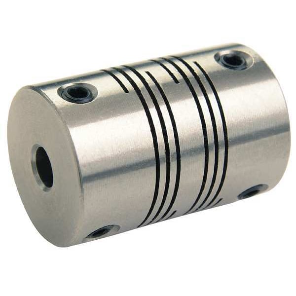 Motion Control Coupling, Angular Misalignment 3 Degrees , Bore Diameter 1 5/8 in, Bore Diameter 2 1/2 in, Coupling Material Stainless Steel, Coupling Outside Diameter 1 1/2 in, Maximum Speed 6,000 RPM, Maximum Torque 175 in-lb, Axial Motion 0.015 in, Overall Length 2 1/4 in, Parallel Misalignment 0.03 in, System of Measurement Inch, Different Bore Sizes Yes, Torsional Stiffness 32.26 in-lb/Deg, Bore Type Round, Shaft Locking Type Set Screw, Number of Beams 6, Length Through Bore 2 1.1 in