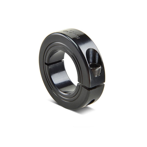 Ruland clamp style shaft collars do not mar the shaft, are infinitely adjustable, and have superior holding power when compared to set screw collars. This one-piece international series shaft collar has a 0.2500" bore, 18mm OD, and 9mm width. International series collars have metric outer diameter and width dimensions. They are supplied with a metric screw allowing users to have an inch bore collar that can be installed with metric tools. Tightly controlled face to bore perpendicularity is maintained (TIR of < 0.05mm) which is critical when the collar is used as a load bearing face, mechanical stop, or for component alignment. The work surface is identified by two grooves on the face allowing the user to easily identify which side is precision faced. This collar is stamped with the Ruland name and bore size for ease of identification. It is manufactured from 1215 lead-free steel to a fine burr-free finish with Ruland's proprietary black oxide formulation which creates a fine glossy appearance and increases holding power and corrosion resistance. Hardware tests beyond DIN 912 12.9 standards for maximum holding power. It is RoHS and REACH compliant.
