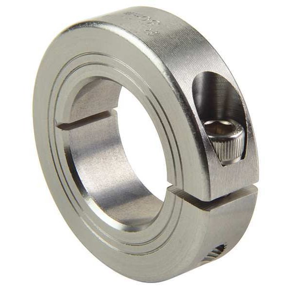 Shaft Collar, System of Measurement Metric, Bore Type Round, Bore Diameter 65 mm, Bore Thread Size Not Applicable, Collar Outside Diameter 93 mm, Inside Height to Flat Not Applicable, Clearance Diameter 99.8 mm, Collar Width 19 mm, Collar Material Stainless Steel, Keyway Width Not Applicable, Collar Material Grade 303, Keyway Depth Not Applicable, Thread Direction Not Applicable, Center to Lever Top Not Applicable, Collar Construction 1-Piece, Screw Material Stainless Steel