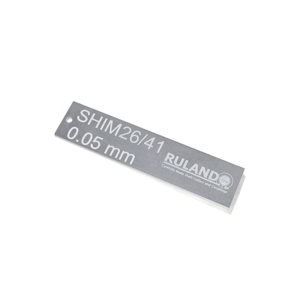 Ruland shims are a pack of aluminum shims designed to during assembly of Ruland manufactured zero-backlash jaw and oldham couplings. They come with 32 layers that can be peeled off with a knife or other sharp object and are made from 5052 aluminum for corrosion resistance, rigidity, and durability. Shims maintain the correct spacing between the hubs and insert of the coupling allowing it to reach its full misalignment capabilities. The shim slides in between the hub and insert while the user is assembling the coupling and is removed once assembly is finished. This shim is designed to fit zero-backlash jaw and oldham couplings with an identifier of 26/41 and manufactured by Georg Martin GmbH in Germany.. All shims are RoHS and REACH compliant.