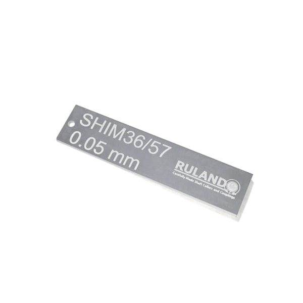 Ruland shims are a pack of aluminum shims designed to during assembly of Ruland manufactured zero-backlash jaw and oldham couplings. They come with 32 layers that can be peeled off with a knife or other sharp object and are made from 5052 aluminum for corrosion resistance, rigidity, and durability. Shims maintain the correct spacing between the hubs and insert of the coupling allowing it to reach its full misalignment capabilities. The shim slides in between the hub and insert while the user is assembling the coupling and is removed once assembly is finished. This shim is designed to fit zero-backlash jaw and oldham couplings with an identifier of 36/57 and manufactured by Georg Martin GmbH in Germany.. All shims are RoHS and REACH compliant.