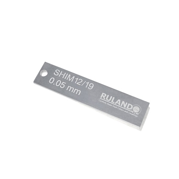 Ruland shims are a pack of aluminum shims designed to during assembly of Ruland manufactured zero-backlash jaw and oldham couplings. They come with 32 layers that can be peeled off with a knife or other sharp object and are made from 5052 aluminum for corrosion resistance, rigidity, and durability. Shims maintain the correct spacing between the hubs and insert of the coupling allowing it to reach its full misalignment capabilities. The shim slides in between the hub and insert while the user is assembling the coupling and is removed once assembly is finished. This shim is designed to fit zero-backlash jaw and oldham couplings with an identifier of 12/19 and manufactured by Georg Martin GmbH in Germany.. All shims are RoHS and REACH compliant.