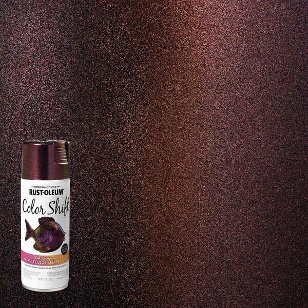 Rust-Oleum Color Shift spray paint contains advanced light interference pigments that change color depending on the light source. Color Shift paint provides a special effect to bikes helmets running boards rims skateboards and home decor items. It can be applied to ceramic metal glass plastic and more. Apply over a black base coat (Rust-Oleum Imagine Color Shift Black Basecoat) for best results - the more coats the more dramatic the effect will be.