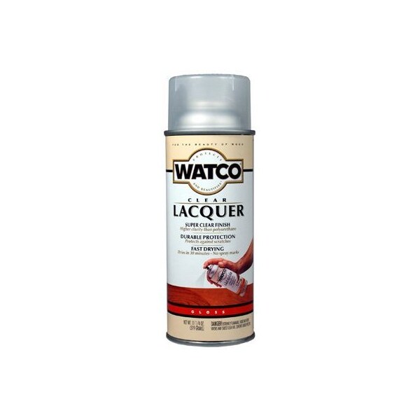 Watco, 1125 OZ, Aerosol, Gloss Lacquer Clear Wood Finish, For Interior Wood Surfaces, Fast Drying, Dries To Handle In 30 Minutes, No Sanding Required Between Coats, Crystal Clear