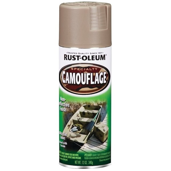 RUST-OLEUM Specialty Camouflage Spray provides a non-reflective, ultra-flat finish for maximum hiding. Applies to metal, wood, plaster or masonry. Offers long-lasting protection when applied on top of primer.