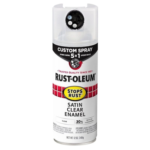 5-In-1 Enamel Paint, Satin, Clear, 12 oz, Aerosol Can