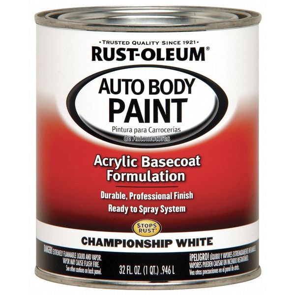 Auto Body Paint, Championship White, Satin Finish, Container Size 1 qt, Dry Time 1/2 hr, Dry Time Recoat 1 hr, Dry Time Tack Free 1/2 hr, Application Temperature 50 to 90 Degrees F, Application Method Brush, Spray, VOC Content 405g/L
