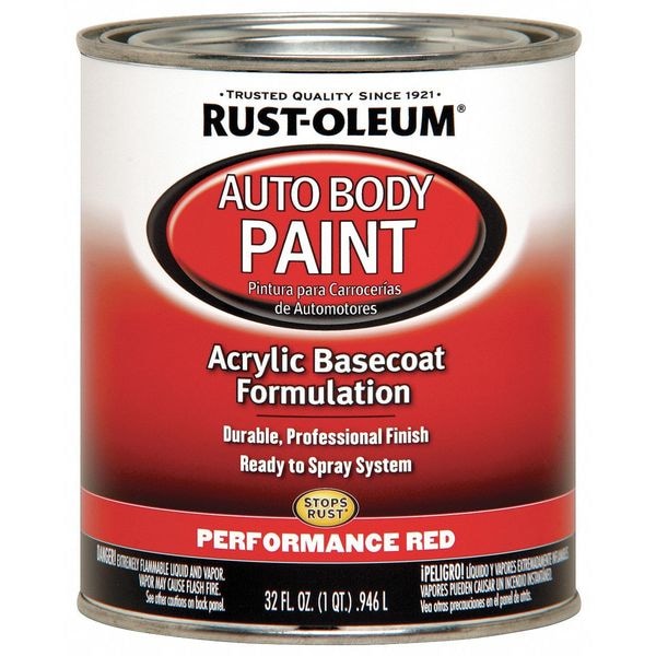 Auto Body Paint, Performance Red, Satin Finish, Container Size 1 qt, Dry Time 1/2 hr, Dry Time Recoat 1 hr, Dry Time Tack Free 1/2 hr, Application Temperature 50 to 90 Degrees F, Application Method Brush, Spray, VOC Content 430g/L