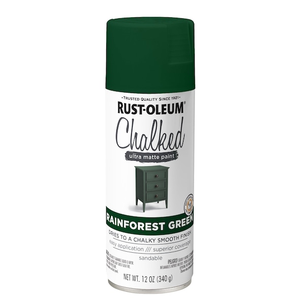 Chalked Spray Paint, Rainforest Green, Ultra Matte, 12 oz